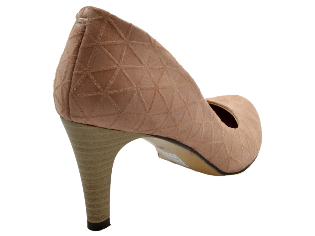 - Vyrobeno hladké růžové kůže s pravidelným motivem z broušené kůže ve stejném odstínu po celém obvodu lodičky.
